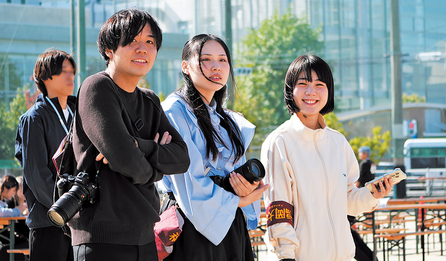 年間を通じて、卒業アルバムに掲載するさまざまな撮影を行っております。学内だけでなく、学外でも撮影をしていますので、見かけたら気軽にカメラに向かって笑顔をください。
