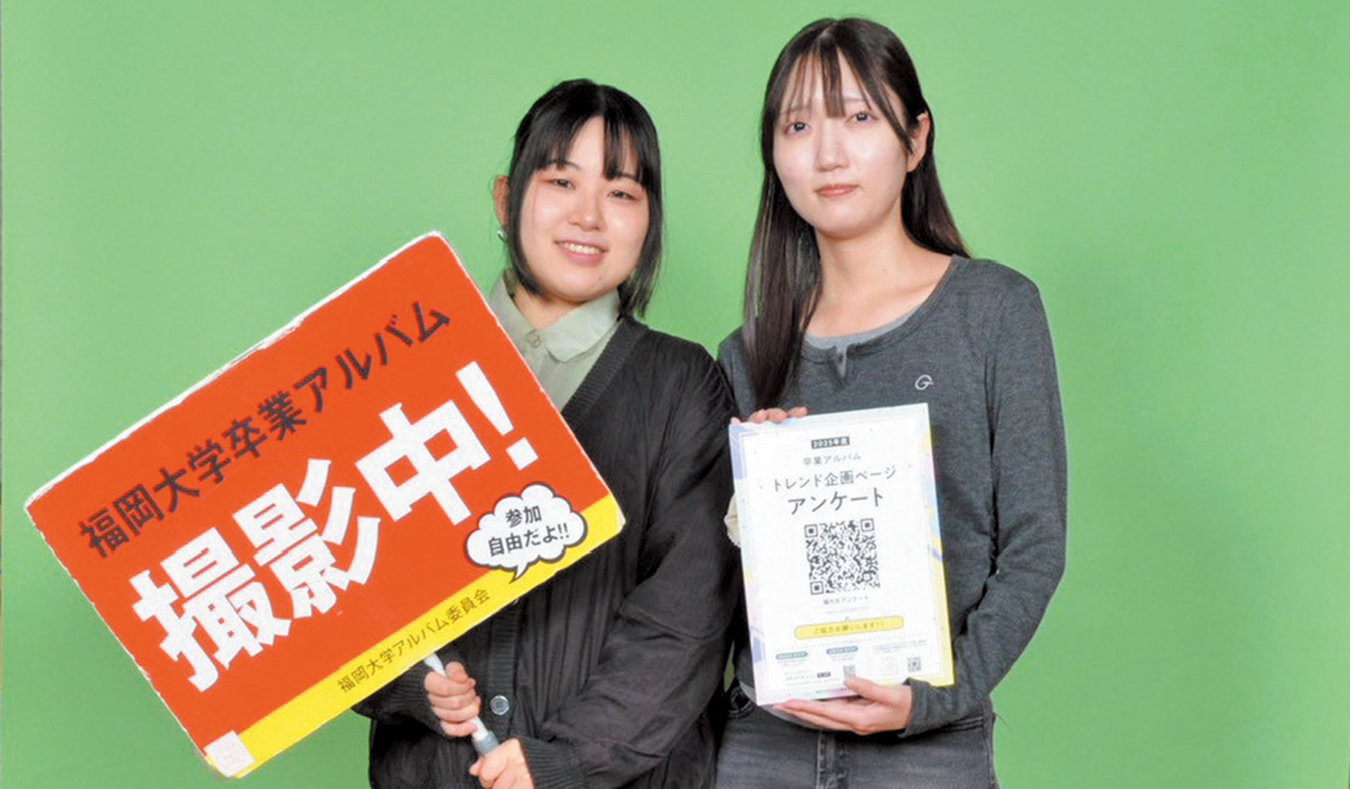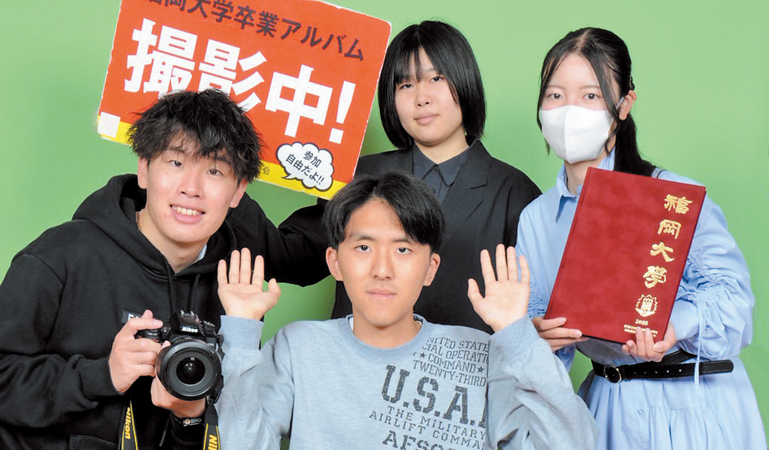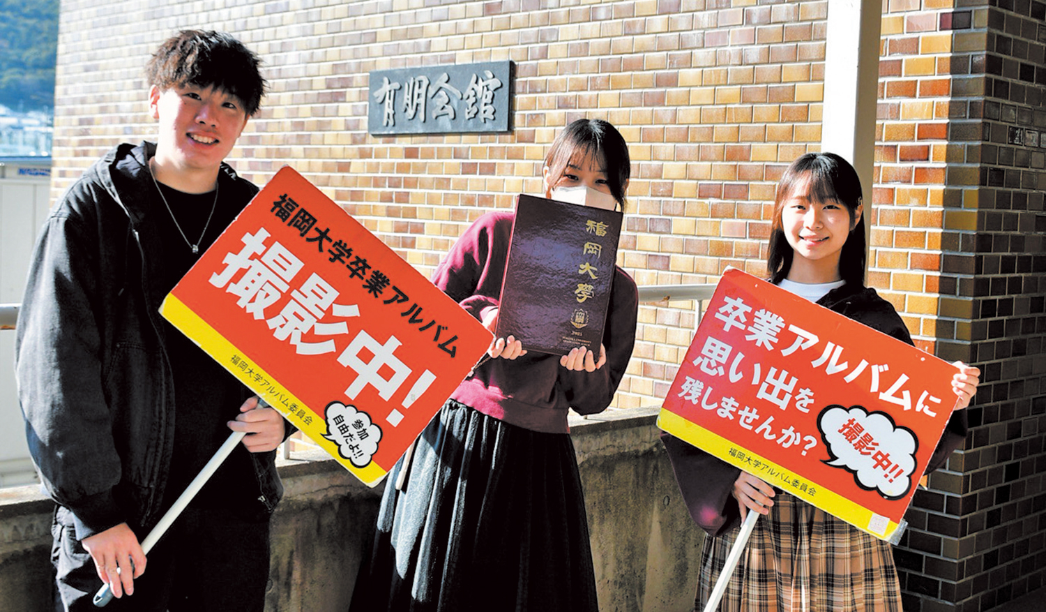 私たちは福岡大学学友会アルバム委員会です。卒業式に配布する卒業アルバムを製作しています。