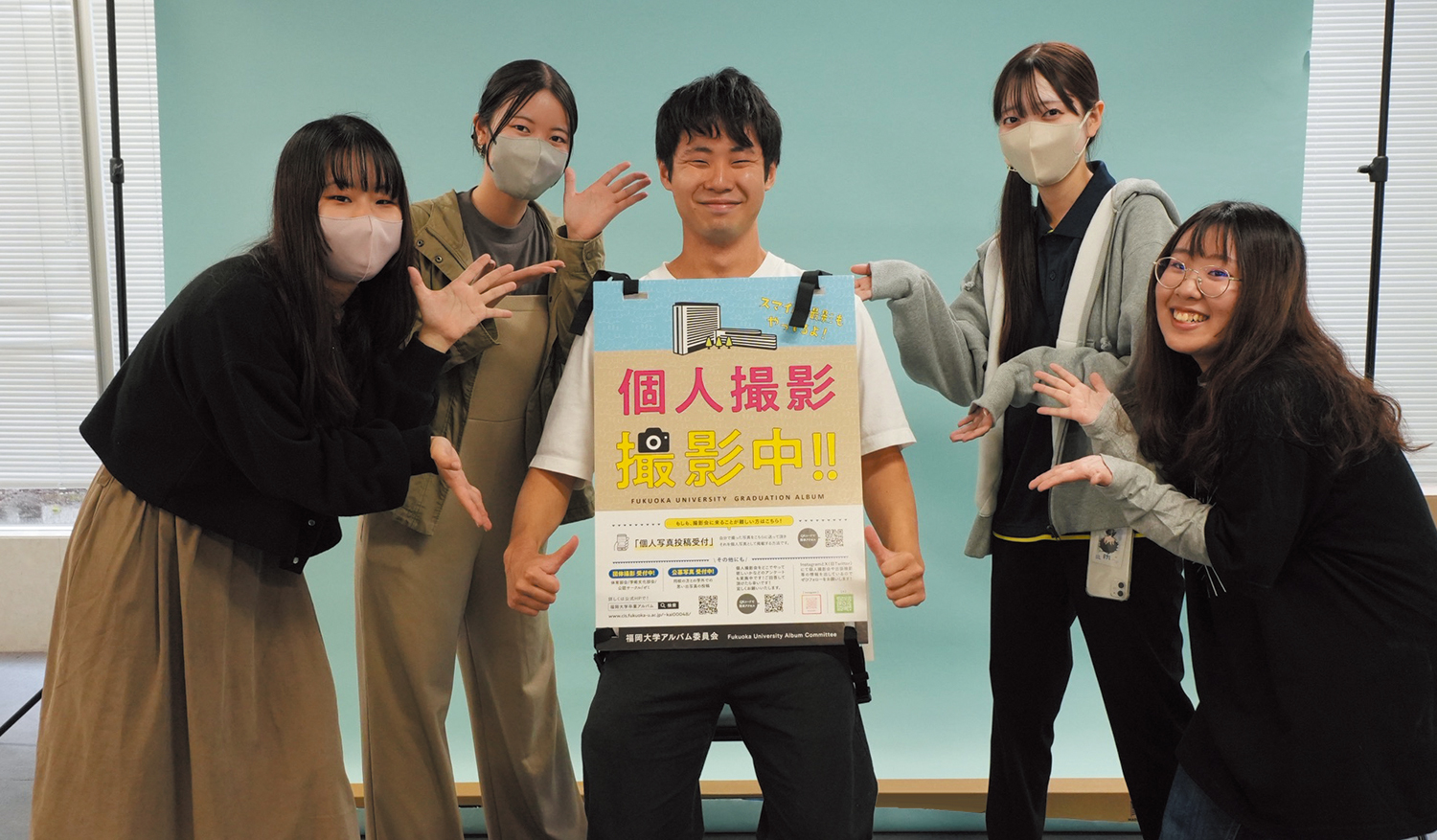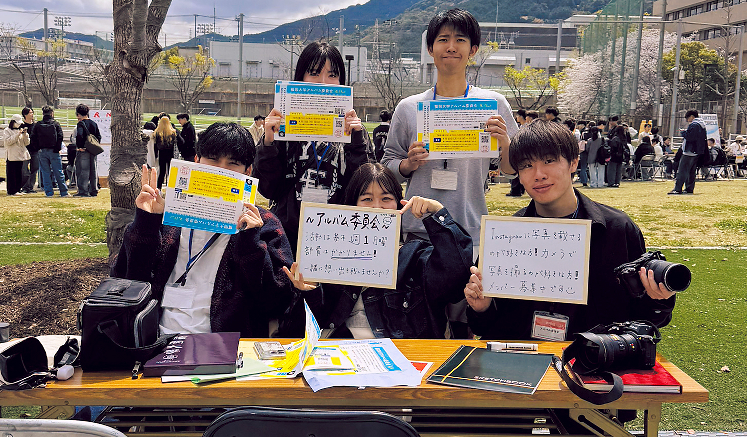 また、私たちアルバム委員会の活動に興味がある方、カメラが好きで撮影がしたい方、カメラに興味があるけど触ったことがないという方など、私たちと一緒に活動してくれる福大生を募集しています。
