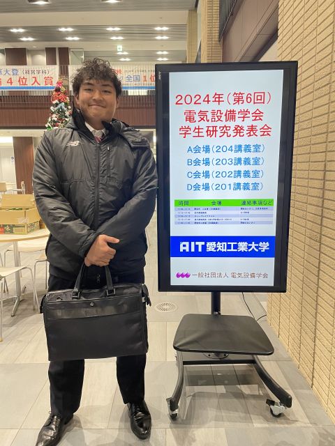 2024/12/24 B4 二宮君が2024年 (第6回) 電気設備学会学生研究発表会 (愛知工業大学 自由ヶ丘キャンパス) で口頭発表を行いました。