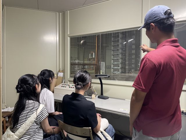 2024/08/04 オープンキャンパスで1500kVインパルス電圧発生装置を用いた人工雷実演と沿面放電実演を行いました。訪問者数275名でした。