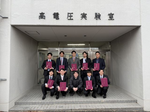 2025/03/13 高電圧・電気材料研究室所属の卒研生10名が福岡大学工学部電気工学科を卒業しました。
