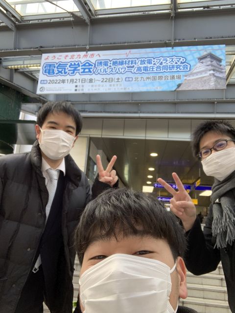 2022/01/21~22 M1 土谷君、M1 藤村君、荒岡助手が電気学会 誘電・絶縁材料/放電・プラズマ・パルスパワー/高電圧 合同研究会 (北九州国際会議場・ハイブリッド開催) にて口頭発表を行いました。