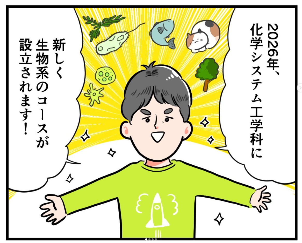 2026年度より当学科は「化学工学コース」「応用化学コース」「生物工学コース」の3コース制になります。